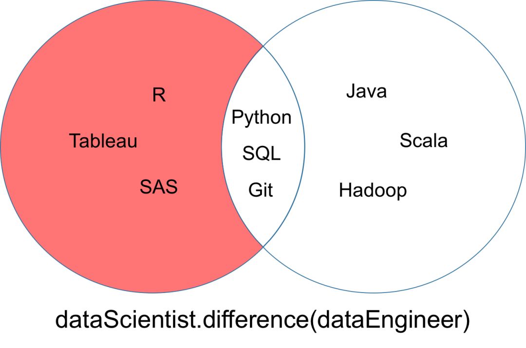 集合「dataScientist」和「dataEngineer」的差集可以表示为「dataScientist \ dataEngineer」,是所有属于「dataScientist」但不属于「dataEngineer」的元素集合。