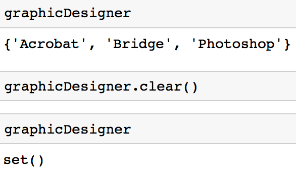 graphicDesigner = {'Illustrator', 'InDesign', 'Photoshop'}