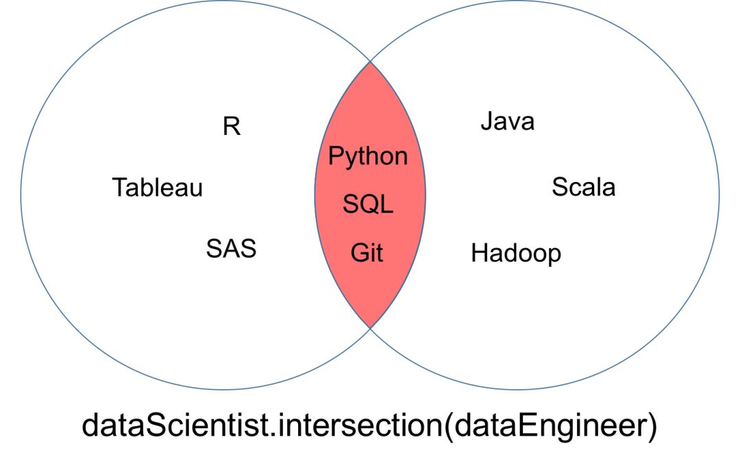 集合「dataScientist」和「dataEngineer」的交集可以表示为「dataScientist ∩ dataEngineer」,是所有同时属于两个集合的元素集合。