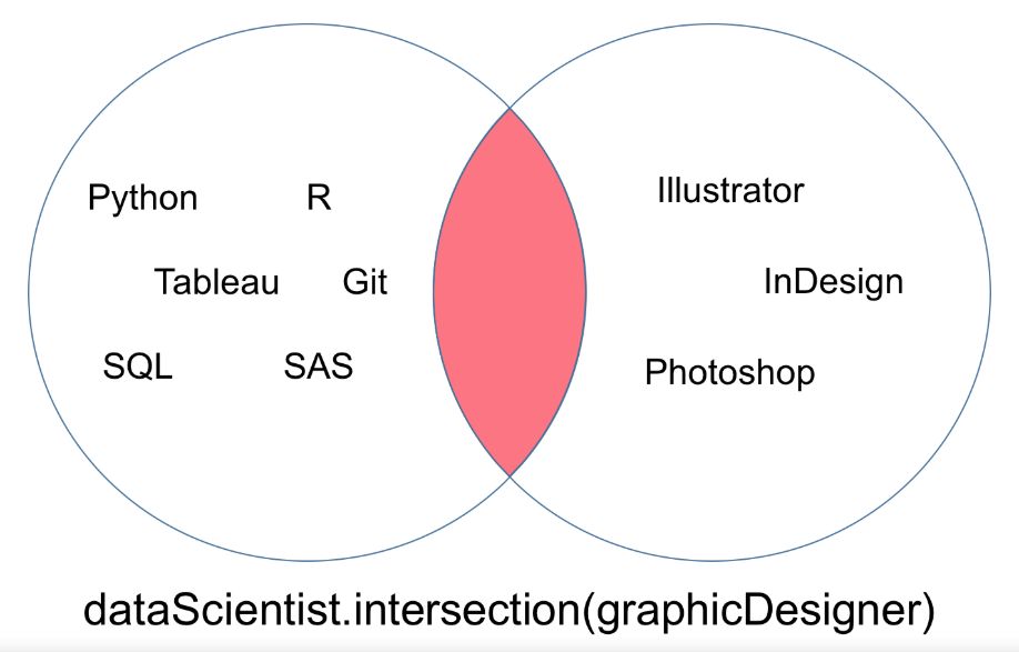 你会注意到,在如下韦恩图所示的交集中,「dataScientist」和「graphicDesigner」没有共有的值。
