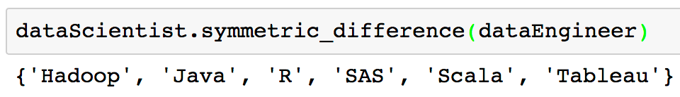 dataEngineer = set(['Python', 'Java', 'Scala', 'Git', 'SQL', 'Hadoop'])
