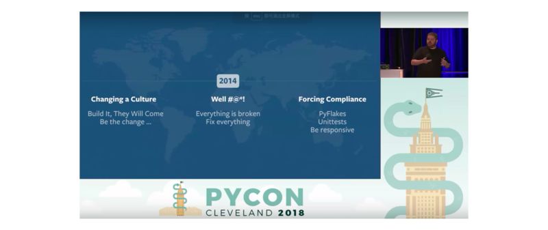 他动用了很多关系把 Pyflakes(一个 lint 工具)添加到构建过程中。他能够证明添加它是有道理的,因为虽然已经有了 PEP 8,但 Pyflakes 可以解决其他额外的代码质量问题。此外,Pyflakes 几乎没有误报,所以它不会惹火开发人员。他做了一些设置,让 Pyflakes 能够扫描所有需要审查的代码,先是 Python 2,然后是 Python 3。这有助于将 Python 3 兼容性扩展至所有开发人员,而不仅仅是他自己,这让他的项目取得了进展。