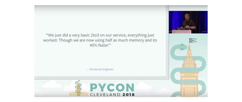 2016 年底,有一个项目团队发表了一篇文章,其中介绍了切换到 Python 3 的结果。开发人员从 Python 2 换到 Python 3 时只需做出一些修复,运行代码的速度就提高了 40%,并仅使用了一半的内存。这打破了 Fried 之前听到的一个传言:Python 3 比 Python 2 慢。早期版本的 Python 3 可能是这样,但现在肯定不是,他说道。