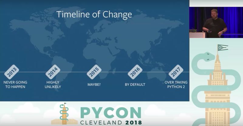 现在的问题是,每个人都在问什么时候可以停止支持 Python 2。当 Python 2 支持库或模块出现回归时,通常会听到开发人员询问是否可以直接升级到 Python 3。而几年前,情况是完全相反的。“哦,世界真美好啊!”