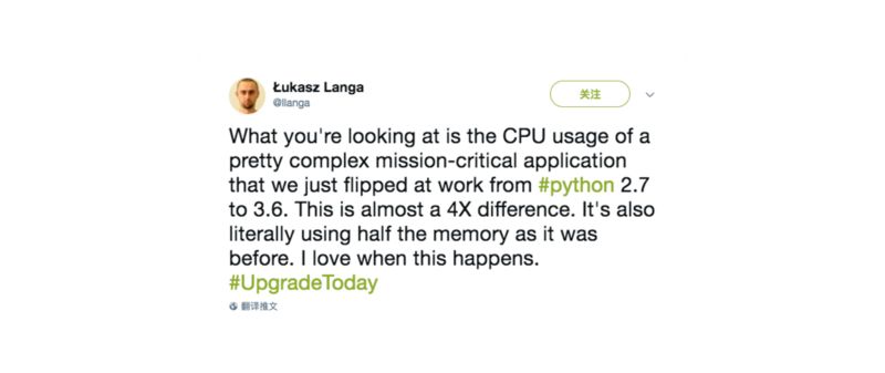 Łukasz Langa 发推文,对 Python 3 低 CPU 占用和运行速度提升表示赞赏。