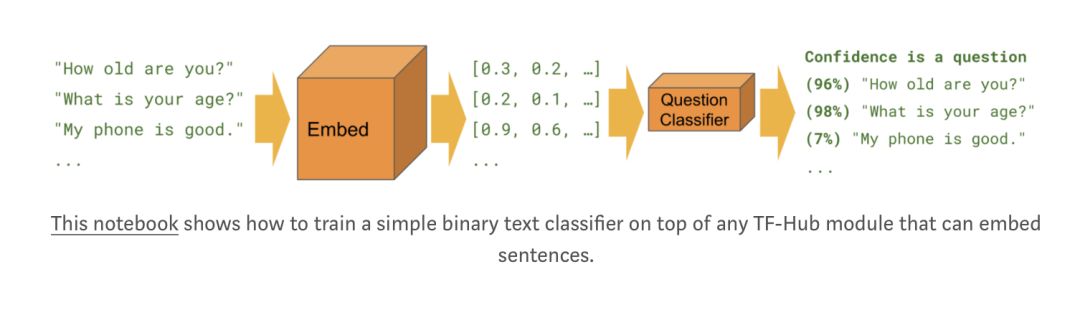 我们还分享了一个新的 TensorFlow Hub 模块!下面是使用 Universal Sentence Encoder 的示例。它是一个句子级嵌入模块,适用于各种数据集。它擅长语义相似性,自定义文本分类和聚类。