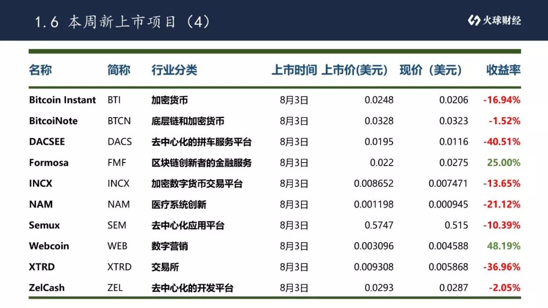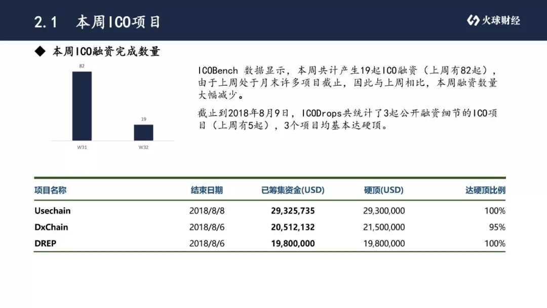 截止到2018年8月9日,ICODrops共统计了3起公开融资细节的ICO项目(上周有5起),3个项目均基本达硬顶。