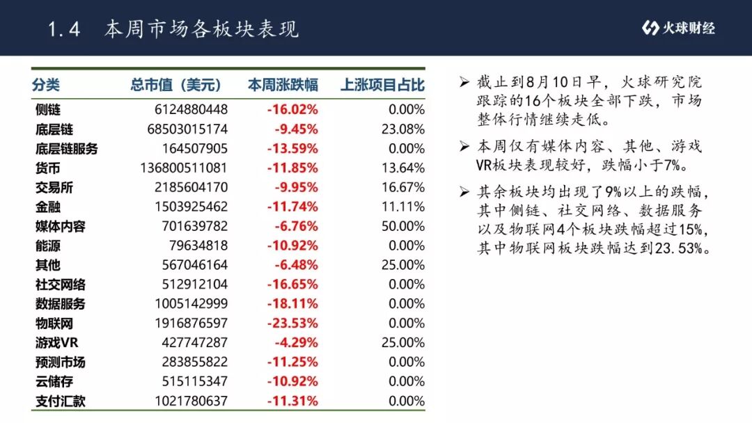 •截止到8月10日早,火球研究院跟踪的16个板块全部下跌,市场整体行情继续走低。