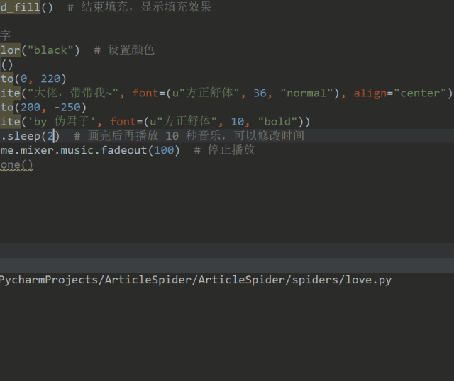 t.write('by 伪君子', font=(u"方正舒体", 10