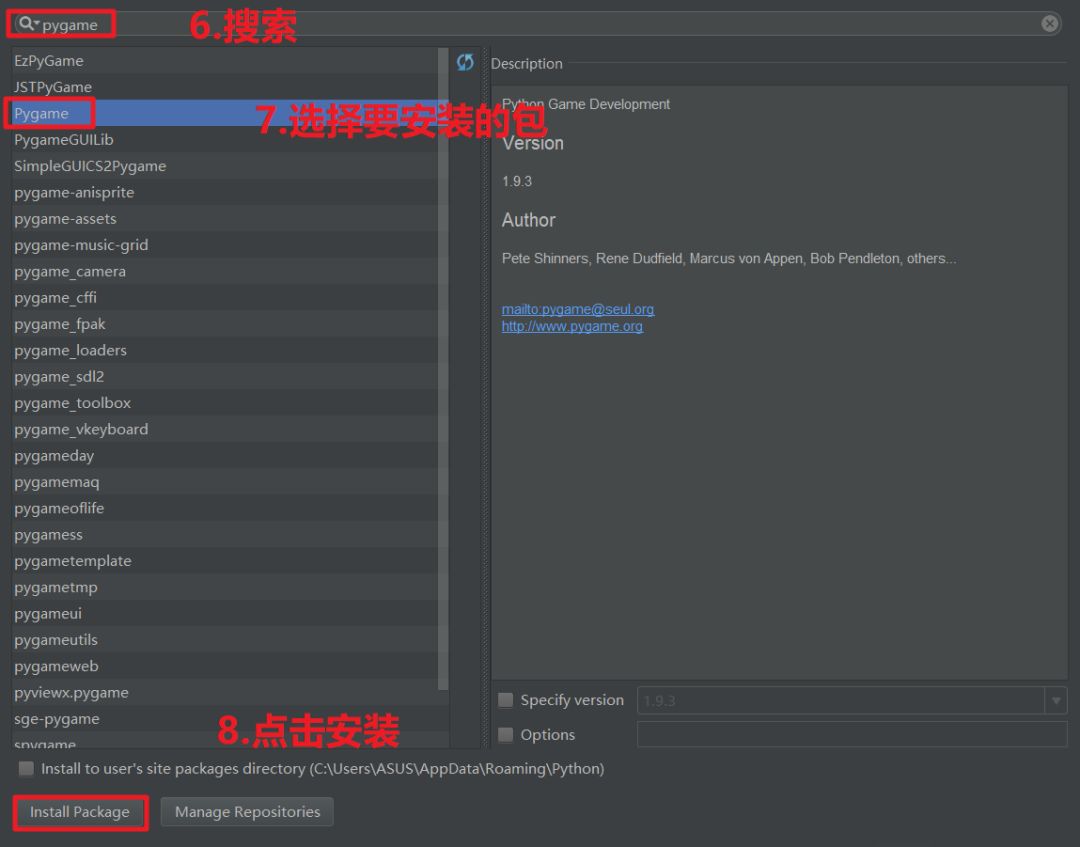 Win10 系统下 Python3,编译器是 Pycharm 。turtle 和 time 是,不用辛苦安装;pygame 可以直接用 pip install pygame 安装,要是不知道该怎么安装,那还是用 Pycharm 安装吧。.