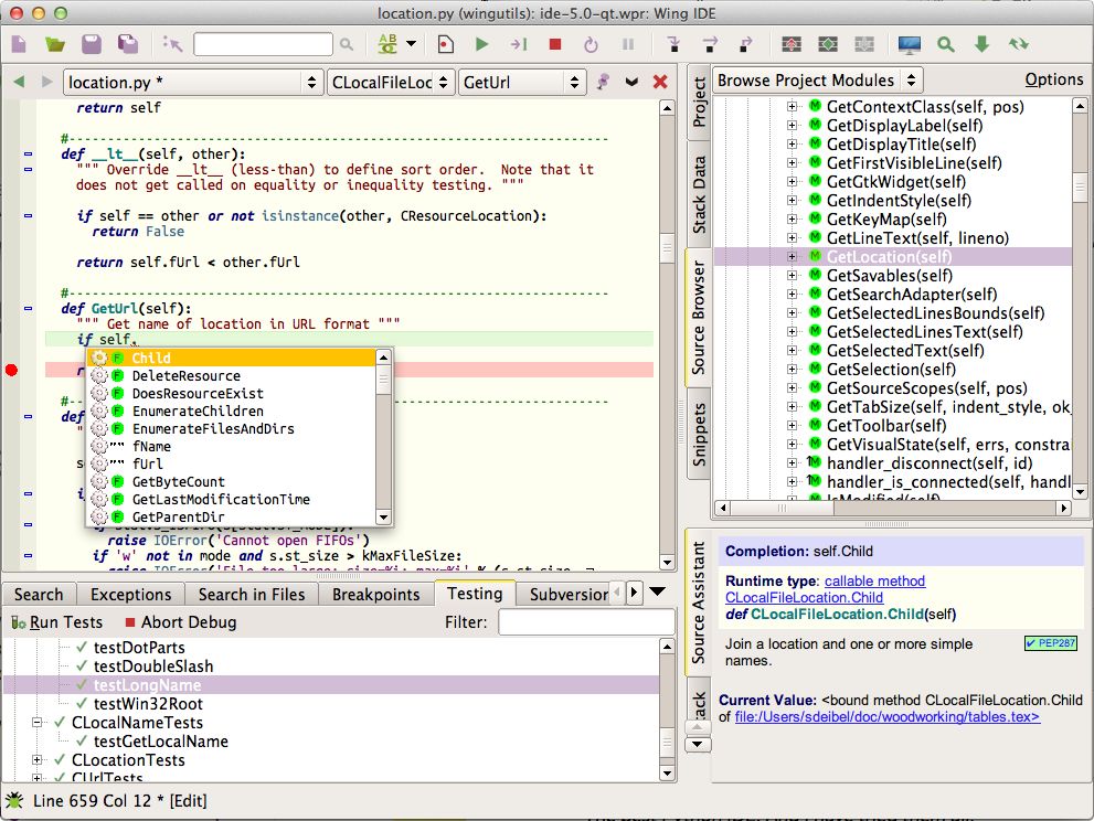 Wingware 的 Python IDE 兼容 Python 2.x 和 3.x,可以结合 Django, matplotlib, Zope, Plone, App Engine, PyQt, PySide, wxPython, PyGTK, Tkinter, mod_wsgi, pygame, Maya, MotionBuilder, NUKE, Blender 和其他 Python 框架使用。Wing 支持测试驱动开发,集成了单元测试,nose 和 Django 框架的执行和调试功能。Wing IDE 启动和运行的速度都非常快,支持 Windows, Linux, OS X 和 Python versi。