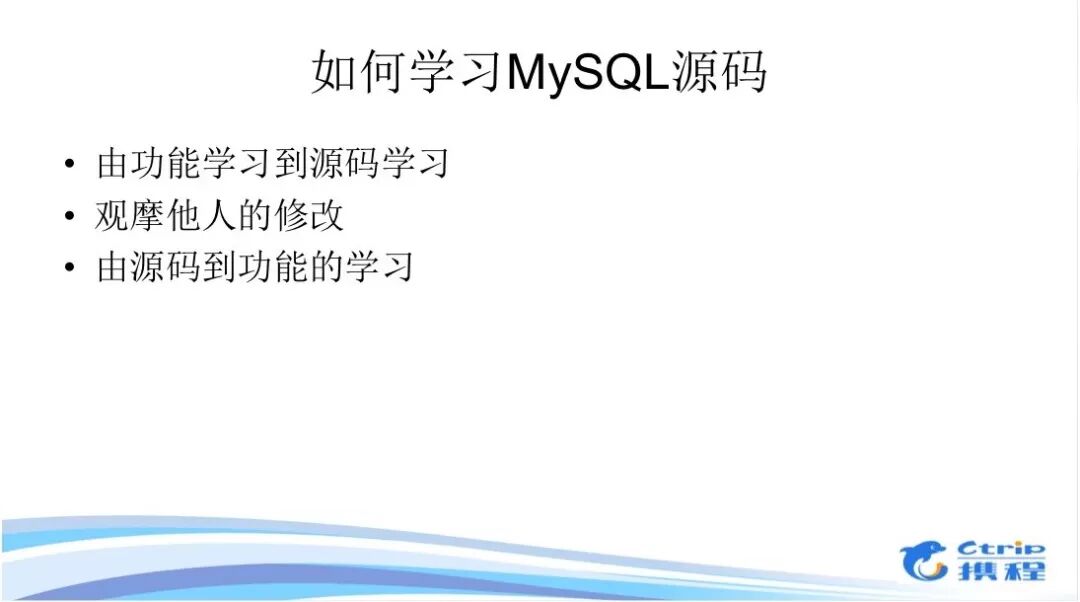 首先第一点,你一定要先了解数据库的绝大部分功能,然后再去研究它的源码,否则的话,你直接拿过来源码看通常是一头雾水。因为一个好的,像MySQL 源码写得很不错,很多函数名和变量的定义能直接跟它的功能关联。如果你不熟悉功能直接看源码时候,你通常找不到它的关联性。