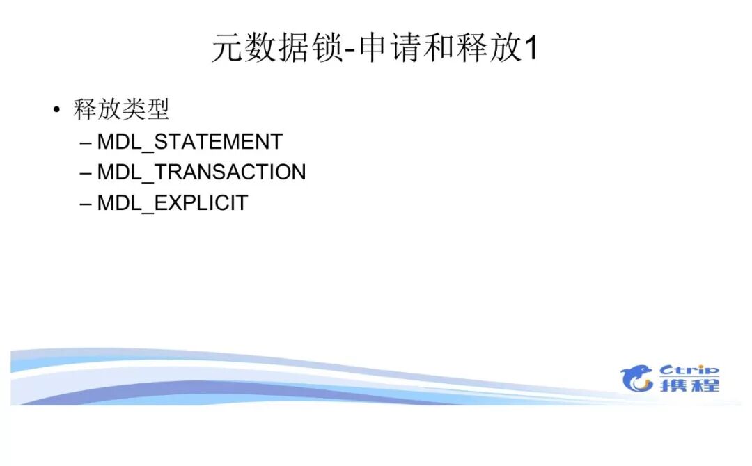 它在元数据上锁的时候,对元数据操作进行上锁,如果指定STATEMENT的时候,它在STATEMENT结束时候会进行判断,看到有这些上了STATEMENT锁的时候会在这时候进行释放。