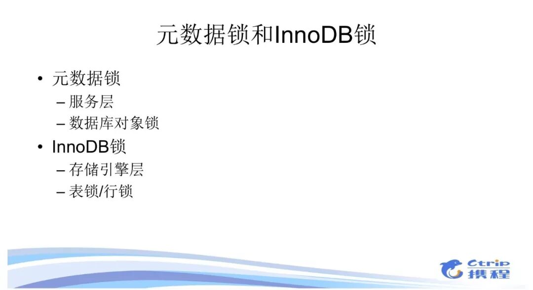 我们看一下元数据锁和InnoDB锁包含什么东西,元数据锁像我刚才说,它锁的是数据库对象。