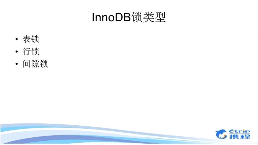 下面讲InnoDB锁,我分这几个部分介绍一下,实际上InnoDB锁是一个非常复杂,PPT里面只能介绍一部分,介绍的这部分也只是针对这种情况下的一个间隙锁的实现,前面还会介绍一些前置知识,事务隔离级,在讲InnoDB会讲锁的级别,间隙锁怎么样,还有和上面MDL告诉源码主要哪几个地方,什么重要入口在哪里。还有再讲一下我在携程针对这方面做了哪些源码改造。