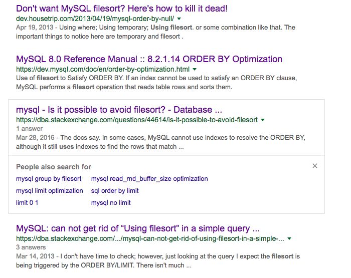 谷歌一下using filesort,几乎都是"如何避免filesort"相关的内容: