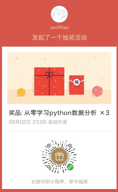 本小编已经送出去很多次书了,之前送的书籍内容为自然语言处理,机器学习,深度学习。这次换个样子,知道python比较普遍,所以这次和出版社商量好的书籍是《从零开始学python数据分析》。总之,老读者都知道福利多多,包括前些天的七夕自费送礼物!