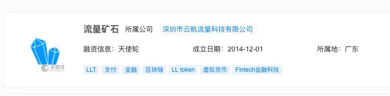 关于“流量矿石”项目的具体情况,通过天眼查可得知,其所属公司为深圳市云帆流量科技有限公司。