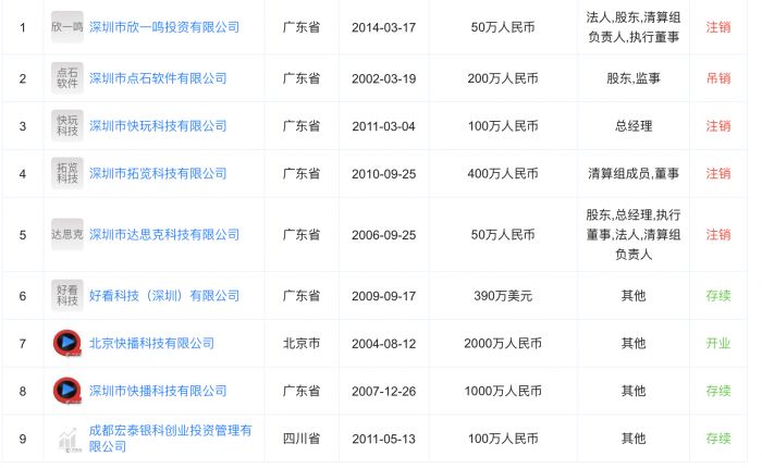 从天眼查的信息中发现,王欣并未新注册公司、设立新的业务,目前已有的9家公司全部在其入狱以前注册。