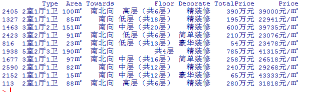 下面我们用R对抓取的赶集网北京二手房数据做一些简单的分析。