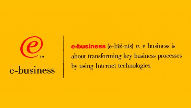 当年IBM还注册了[e]这个商标,看这个图大家会看到,其中说,电子商务所谈的是,用互联网技术去变革关键商业流程。