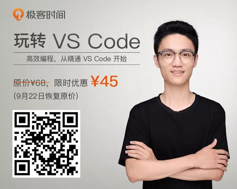 最后,强烈推荐极客时间新上线的 VS Code 专栏。之前,我以为这样的工具安装下来操作下就会用了。现在,看完这系列内容之后,才发现一个编辑器的使用居然还有那么多门道。这个专栏的作者是 VS Code 团队的核心开发者,他会向我们系统介绍 VS Code 中的一些高效编程技巧,有一些是你之前根本不知道的,但是只要你学会了,效率马上就能够提高。