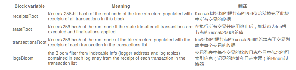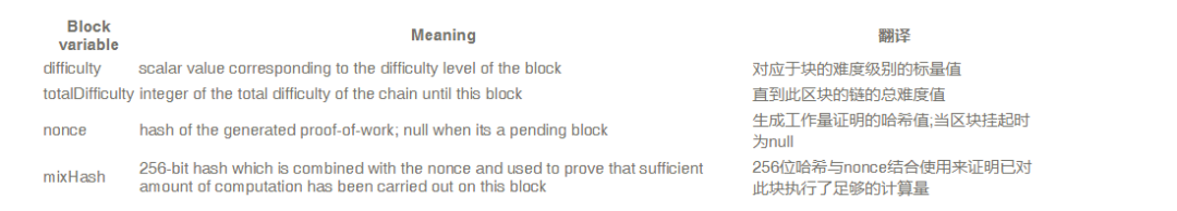 并非所有这些变量都会立即对你有用,因为有些变量非常技术性,只有当你对区块链的实际工作方式有了更深入的了解时,它们的含义才有意义。你可以在所谓的 黄皮书 中阅读有关它们的更多信息,或暂时跳过它们并使用易于理解的方法。