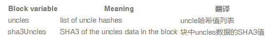 简而言之,一个包含区块头部信息的区块,一个写入它的已验证交易列表和一个未确认列表(矿工的块标识符,他们的区块太慢,无法进入主区块链,但仍因其计算工作量而获得以太奖励)。下面你可以看到每个变量的含义,我把它分成子类别。