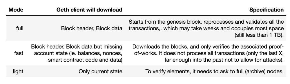 如果要构建大型数据库,则应下载geth并同步节点。同步可以在3种基本模式下完成: