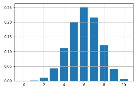 假设你有一枚硬币,每次抛硬币的时候,都有60%的转动概率,玩的是10次抛掷的游戏。如何用这枚硬币计算出所有可能的赢球数(从0到10)?