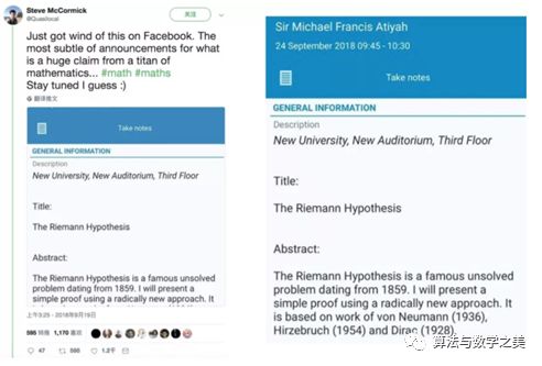 所以,基于这一研究意义,数学界对于迈克尔· 阿提亚9月24日的宣讲自然格外在意。而除了研究意义外,黎曼猜想因为能揭示素数分布的统计规律,跟需要用到素数的加密算法有一定联系,也触发了一些区块链自媒体和币圈人士的“G”点。