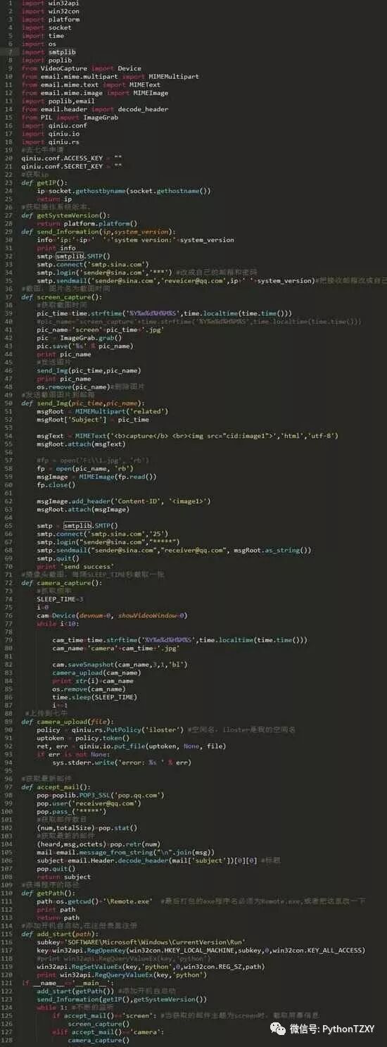 利用python写了一个远程监控的程序,主要功能有: