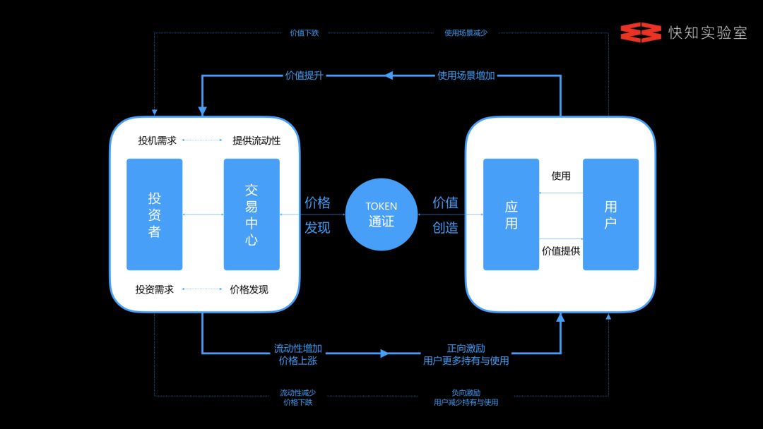 很长的时间里,Token只有左边的小循环,是金融空转,而我们认为通证最终还是要进入应用循环才行,并且形成一个大循环。今天即便FCoin已经没人讨论,我还是觉得它当时做了一个大创新,把平台币嵌入了交易平台自身的核心业务流程。FCoin设计的问题,Henry的文章和前几天的分享,都非常清楚地讨论过。