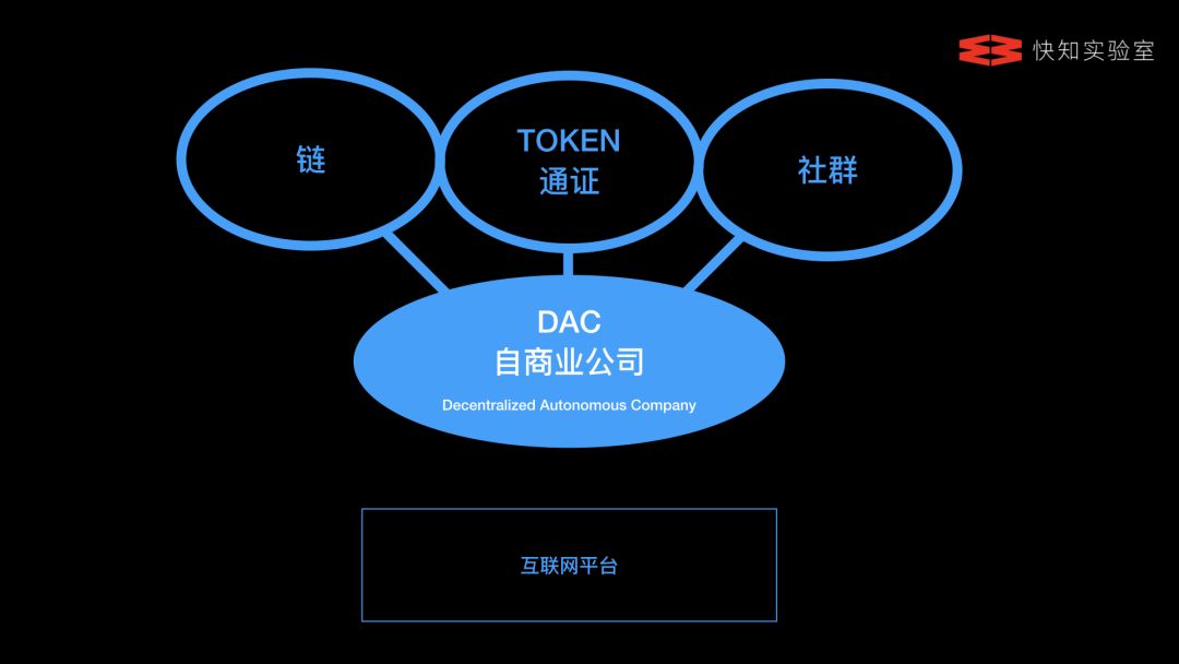 第二个图是,要运转一个通证经济体,这个运转的主体是什么,我们认为是DAC(decentralized autonomous company,自组织商业体,自商业)。