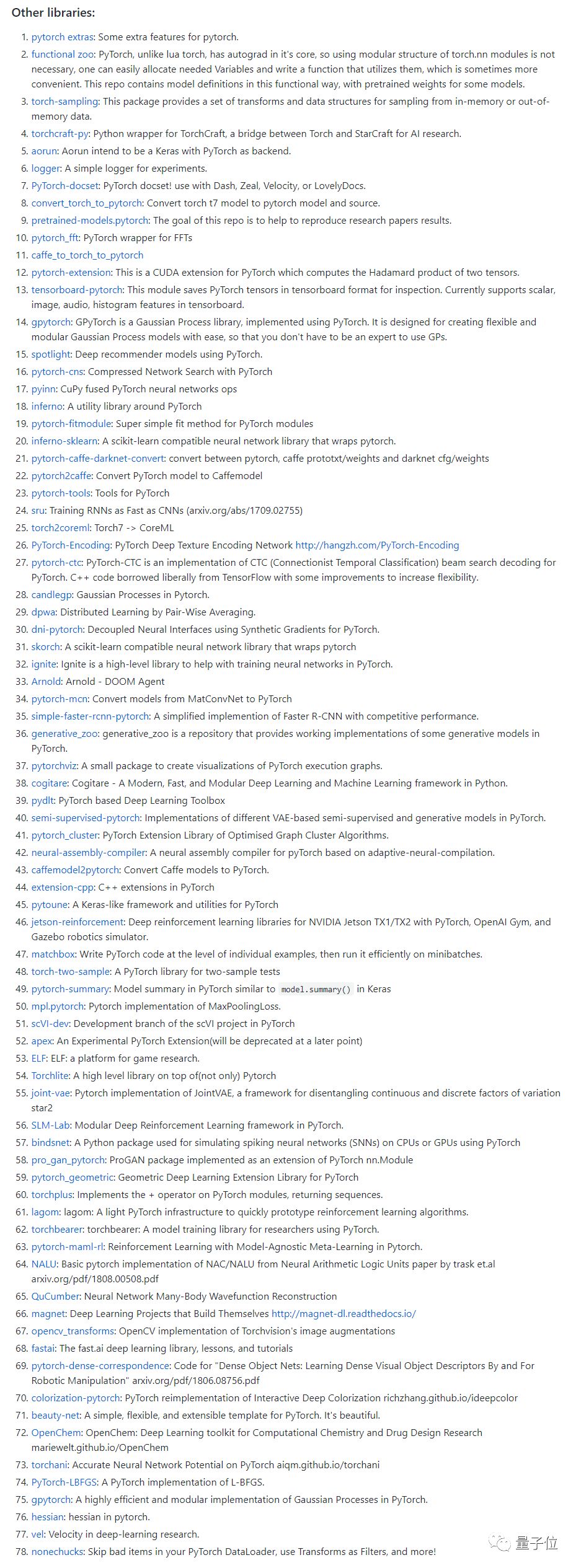 这一部分有七十八个资源,主要涵盖上述领域之外的一些PyTorch库。