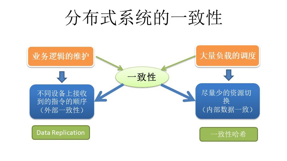 用阿里巴巴的讲法,分布式系统有两个最基本问题(一致性与唯一性),和两个最基本的技术,data replication,与一致性哈希。我今天只讲是Data Replication,状态机在它开始工作之前,我也可以当成一个数据处理。一致性问题可以转化成Data Replication问题,是因为我们可以转化成状态机一致性问题,状态机翻转问题。外部一致性的问题也可以理解为Data Replication问题。