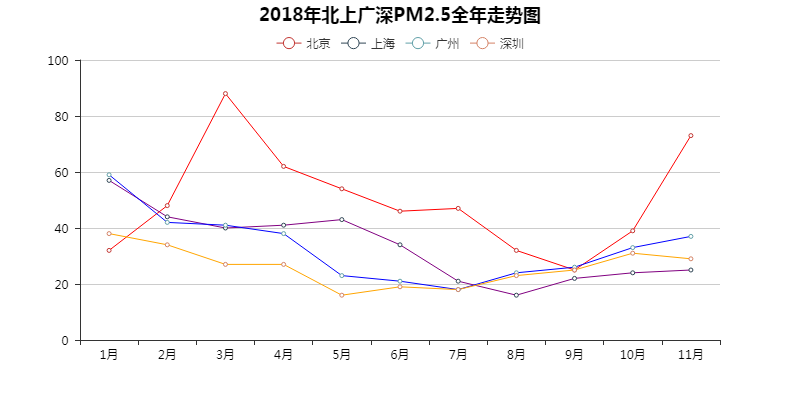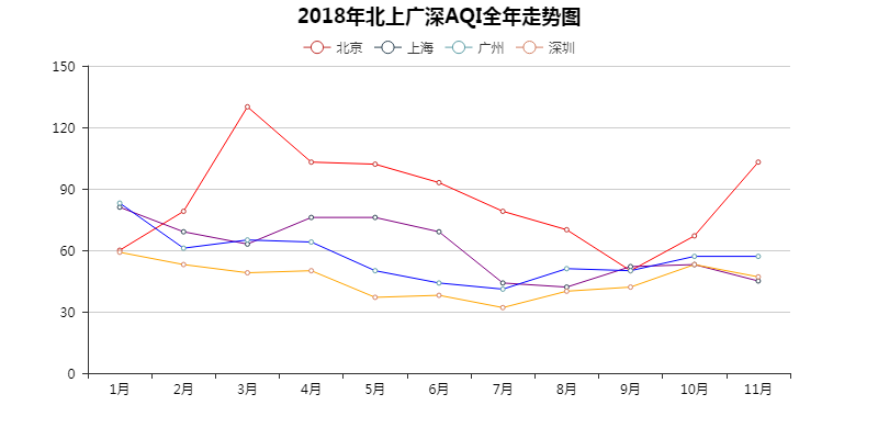 深圳几乎都是「优」和「良」,上海和广州和上面说的一样,北京的「优」已经不少了。