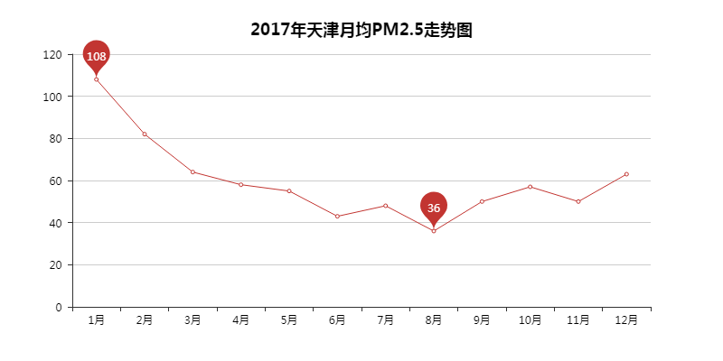 从月均的走势图就能看出,1月的空气质量最差,8月的空气质量最好,当也并不是有多好,充其量也就是个「良」!