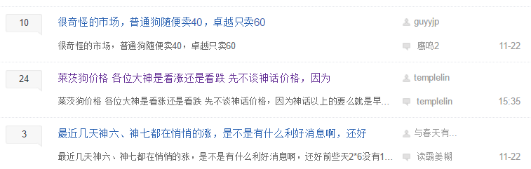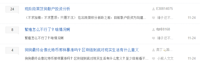 在莱茨狗的贴吧等交流空间,大量用户都在讨论莱茨狗的投资策略与「炒狗」心得,甚至还出现了多个「微积分」的场外交易平台,具体可见下图: