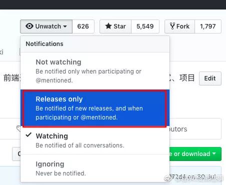 本想着关注该 repo 的新发布更新,但是注册邮箱会时不时收到该 repo 的各种通知邮件。如果嫌烦了,那只好选择(Ingnoring)完全关闭通知。但这样又收不到更新通知了。