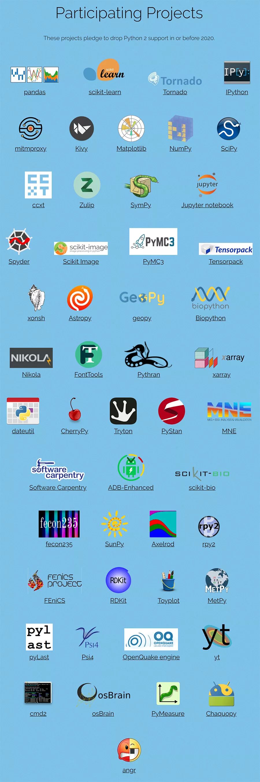 之前我们曾报道过 Python 2.7 将于 2020 年退休的消息,随着该时间节点的临近,已陆续有一大批 Python 项目宣布将在 2020 年之前放弃对 Python 2.7 的支持,包括 pandas、Zulip、IPython、NumPy 等等。