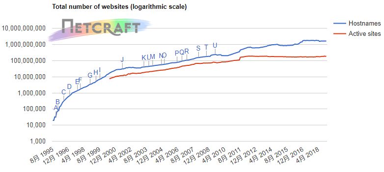 在2018年12月的调查中,NetCraft 收到了来自 1,656,556,205 个站点,227,839,033 个唯一域名(unique domains)和 8,147,795 个面向 Web 的计算机的回应。其中包含新增数据 437 万个站点、109 万个域名和 98.9k 个面向 Web 的计算机。