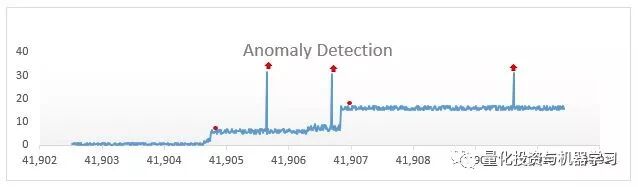 另一个与序列数据(常常是流数据)相关的重要的和流行的任务是异常检测——即发现数据中“非在此刻希望看到的”情况。通常我们用设置阈值方法和测量距离(有时是随机距离)来处理这类问题,但并非每次我们都可以依靠测量两个时间序列之间的欧几里得距离来完成任务。正如上节中提到的聚集技术一样,我们可以依靠用自编码器将数据嵌入到新空间去再使用深度学习,或者我们可以通过部署鉴别器网络作为异常检测器(检查更细微的细节和编码)使用GANs(生成对抗网络)来进行异常检测。