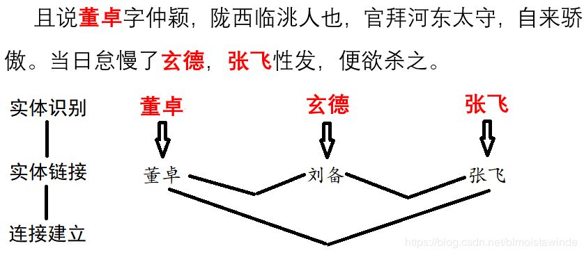 《三国演义》并不是很容易处理的文本,它接近古文,我们会面对古人的字号等一系列别名。比如电脑怎么知道“玄德”指的就是“刘备”呢?那就要我们给它一些知识。我们人通过学习知道“玄德”是刘备的字,电脑也可以用类似的方法完成这个概念的连接。我们需要告诉电脑,“刘备”是实体(类似于一个对象的标准名),而“玄德”则是“刘备”的一个指称,告诉的方式,就是提供电脑一个知识库。