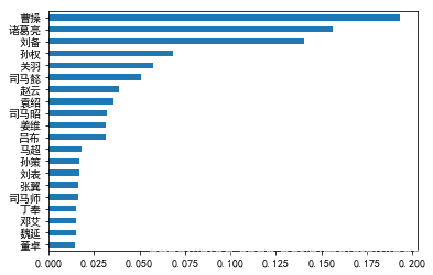 结果的确和上面的排序有所不同,我们看到刘备、曹操、孙权、袁绍等主公都名列前茅。而另一个有趣的发现是,司马懿、司马昭、司马师父子三人同样榜上有名,而曹氏的其他后裔则不见其名,可见司马氏之权倾朝野。司马氏之心,似乎就这样被大数据揭示了出来!