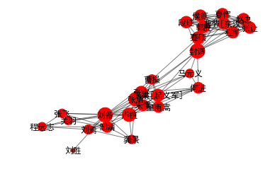 这个问题看上去跟上面一个问题很像,但其实还是有区别的。就像人缘最好的人未必是领导一样,能在团队中心起到凝聚作用,使各个成员相互联系合作的人才是最有权力的人。中心度就是这样的一个指标,看看三国中最有权力的人是哪些吧?