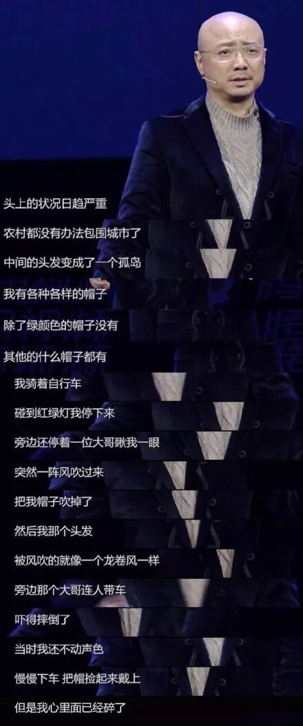前段时间,徐峥作为嘉宾参加了腾讯综艺《星空演讲》,在节目中讲述了他20岁就秃头的故事。