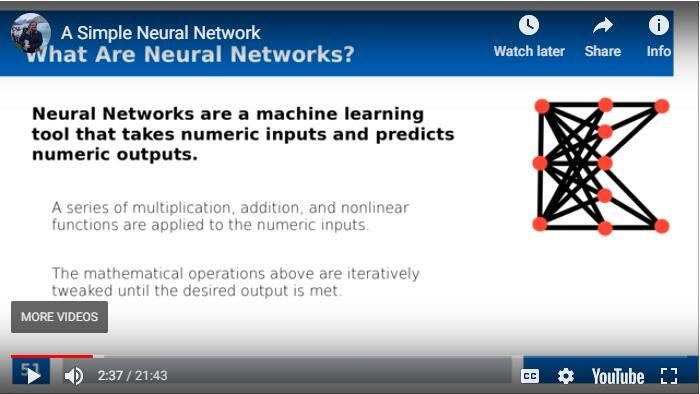 近年来,“人工智能”经常与 “神经网络” 联系在一起,这也是本文关注的重点。当然还有其他的 “人工智能” 解决方案,从其他机器学习模型(朴素贝叶斯、支持向量机、XGBoost)到搜索算法。然而,神经网络可以说是目前最热门、最受追棒的技术。如果你想了解更多关于神经网络的知识,请观看我下面发布的视频。