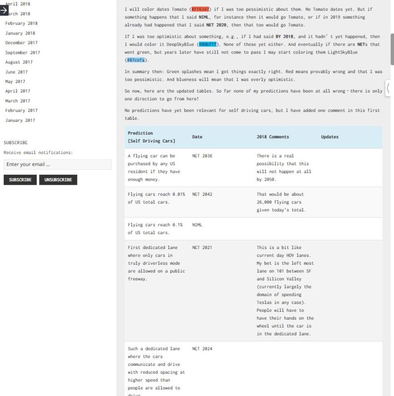 康奈尔大学的 Gary Marcus 写了一篇关于深度学习局限性的有趣文章《Deep Learning: A Critical Appraisal》(https://arxiv.org/abs/1801.00631),并提出了几个发人深省的观点(在这篇文章走红之后,他还写了一篇同样有趣的后续文章《In defense of skepticism about deep learning》(https://medium.com/@GaryMarcus/in-defense-of-skepticism-about-deep-learning-6e8bfd5ae0f1))。Rodney Brooks 正在整理时间轴,并通过引用的研究跟踪他对人工智能炒作周期预测(http://rodneybrooks.com/predictions-scorecard-2019-january-01/)。