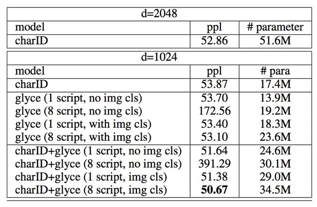 字级别语言模型采用了 Chinese Tree-Bank 6.0 (CTB6.0)语料,并且采用 PPL(困惑度)作为最终的评价指标。通过使用 8 种历史字体和图像分类的损失函数,基于字级别的语言模型的 PPL(困惑度)达到了 50.67。